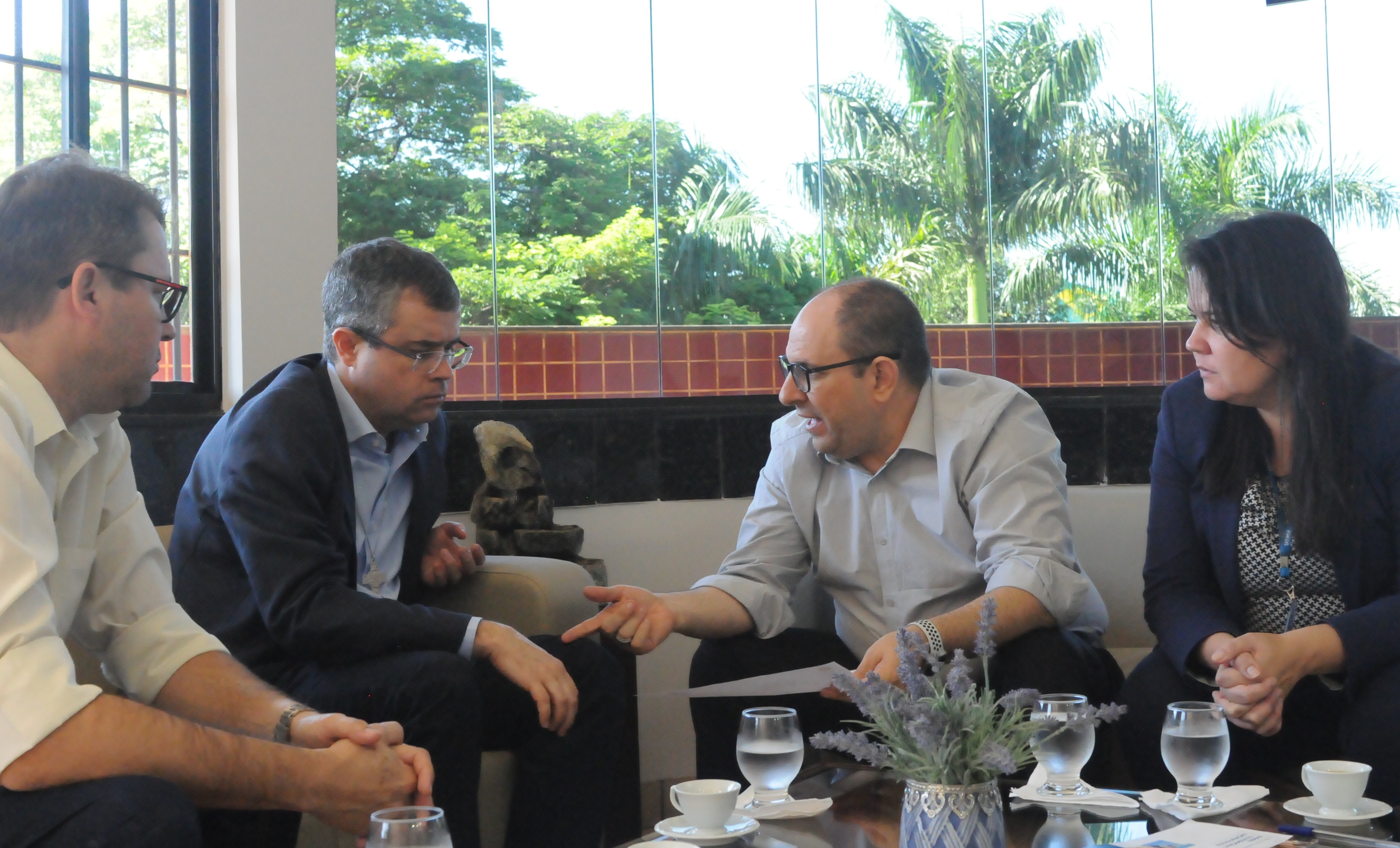 Na manhã de hoje (20), os reitores da UFMS Marcelo Turine e da Universidade Católica Dom Bosco (UCDB) padre Ricardo Carlos, a vice-reitora da Universidade Camila Ítavo e o pró-reitor de Pesquisa e Pós-Graduação da UCDB Cristiano Marcelo Espinola Carvalho se reuniram para acertar os detalhes sobre a participação da UCDB na 71ª Reunião Anual da Sociedade Brasileira para o Progresso da Ciência (SBPC).