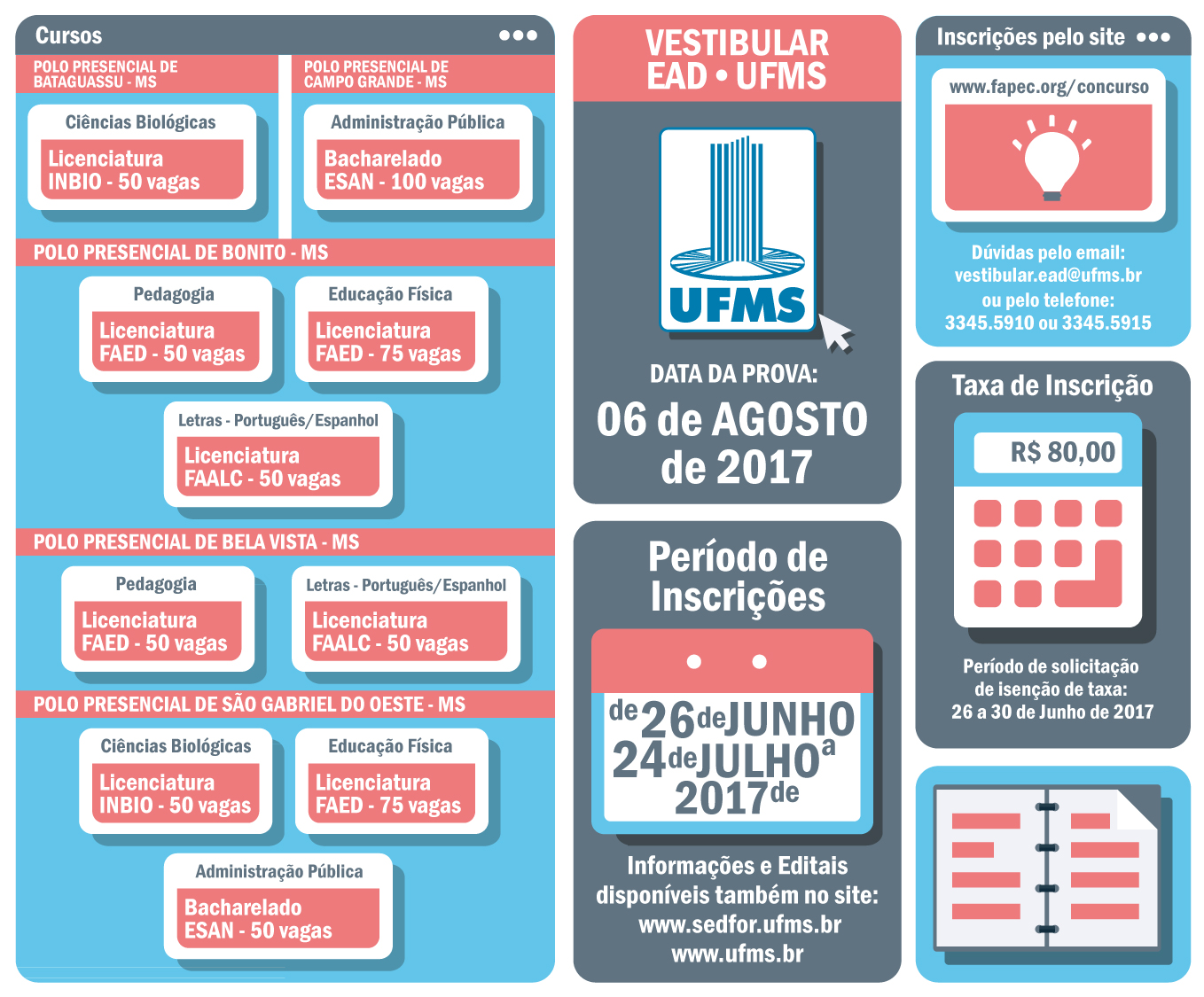 Dúvidas pelo e-mail vestibular.ead@ufms.br e nos telefones 3345-5910/5915.