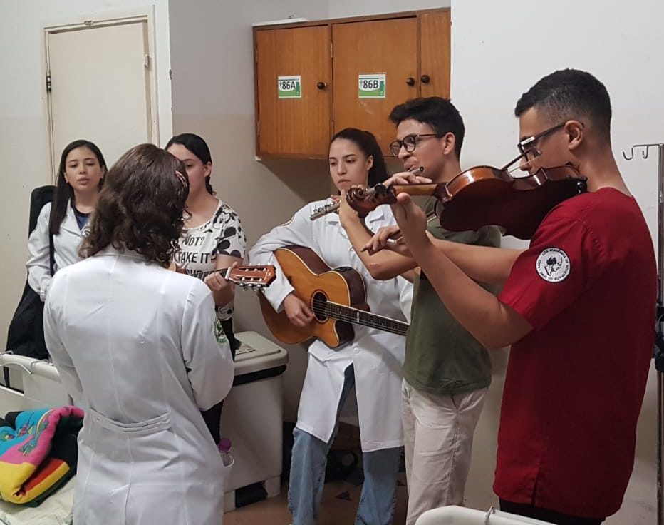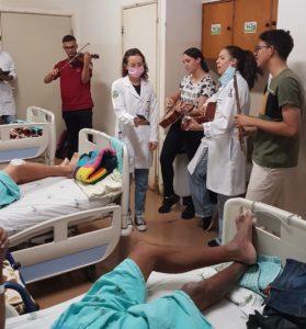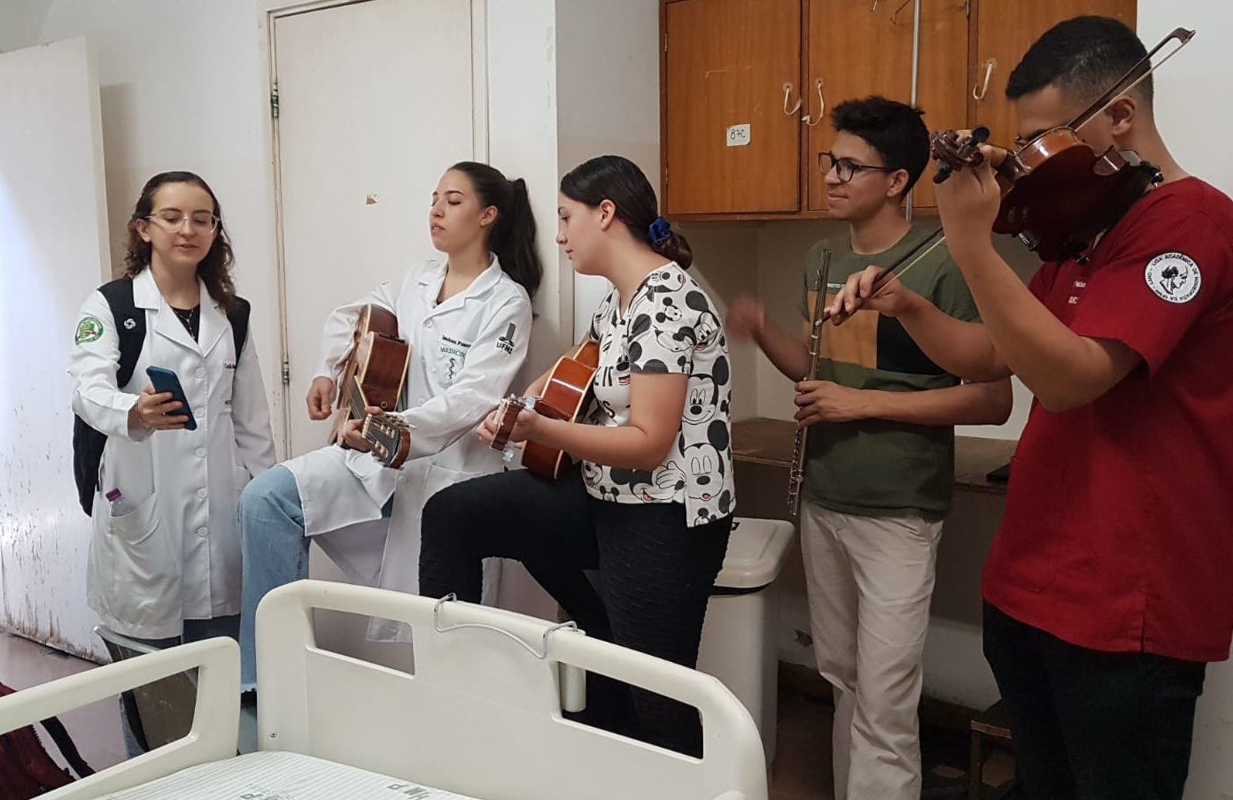 Dizem que música é remédio pra alma. No Hospital Universitário Maria Aparecida Pedrossian (Humap-UFMS/Ebserh) esse salutar ‘medicamento’ vem sendo administrado em doses generosas aos pacientes por um grupo de estudantes da Faculdade de Medicina (Famed) e do Curso de Música todas as semanas. Trata-se do projeto Vida em sinfonia, coordenado pela professora da Famed, Cláudia Du Bocage Santos Pinto.