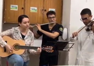 A coordenadora explica que desde a idealização do projeto até o início das atividades, se passaram alguns meses. “A aprovação para que pudesse ter início ocorreu durante as férias acadêmicas. E, foi nesse momento, que as atividades foram iniciadas, com as primeiras idas ao Hospital para tocar para os pacientes. Isso mostra o envolvimento e o genuíno altruísmo dos que estão envolvidos”, destaca. Atualmente, compõem o grupo 13 extensionistas, que preenchem o ambiente hospitalar com sons de violino, violão, flauta, piano e vozes, executando melodias variadas.