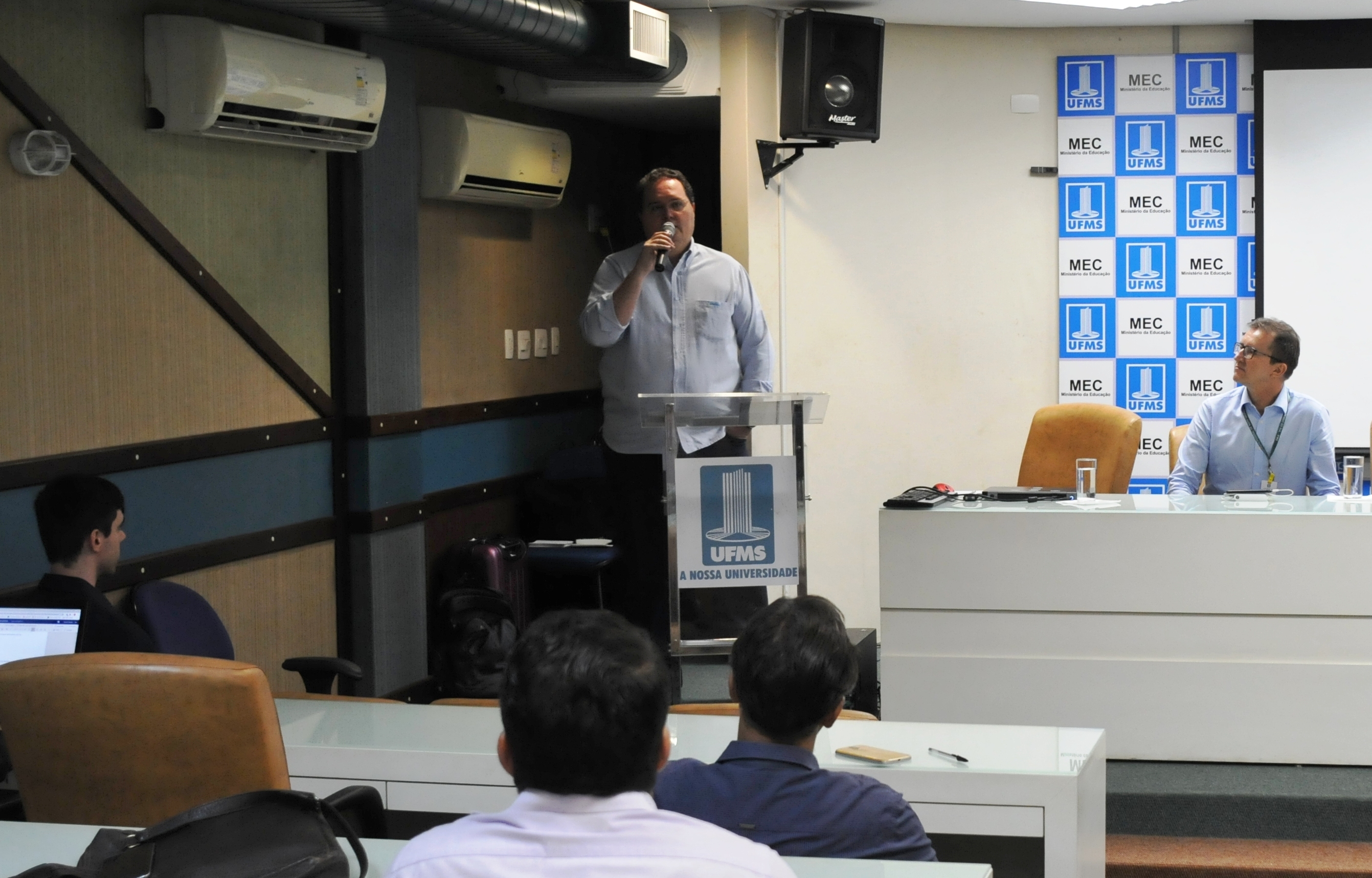 Participaram também da abertura do workshop o reitor do IFMS Luiz Simão Staszczak; o pró-reitor de Pesquisa e Pós-Graduação Nalvo Franco de Almeida Jr.; o diretor da Faculdade de Engenharias, Arquitetura e Urbanismo e Geografia (Faeng) Robert Schiaveto de Souza; o coordenador do Programa de Pós-graduação em Engenharia Elétrica Edson Antonio Batista.