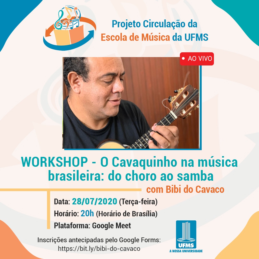Hoje, às 19h, o Projeto Circulação da Escola de Música da UFMS realiza mais um workshop musical, dessa vez com o tema “O cavaquinho na música brasileira: do choro ao samba”.